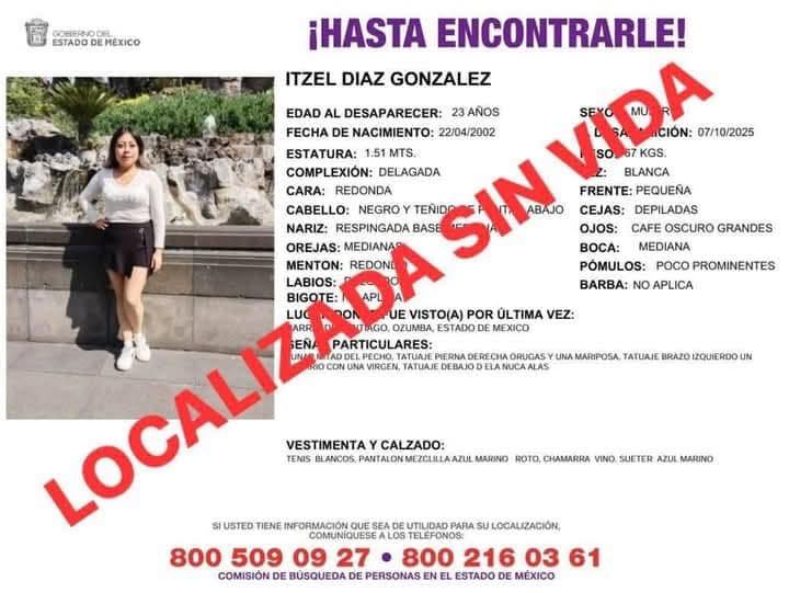Itzel Díaz González, una joven universitaria de 23 años, fue encontrada sin vida en el municipio de Tepetlixpa, Estado de México (Edomex), México, luego de permanecer dos días desaparecida. La tragedia ha generado indignación en su comunidad y ha movilizado a la Fiscalía estatal para esclarecer el crimen.
