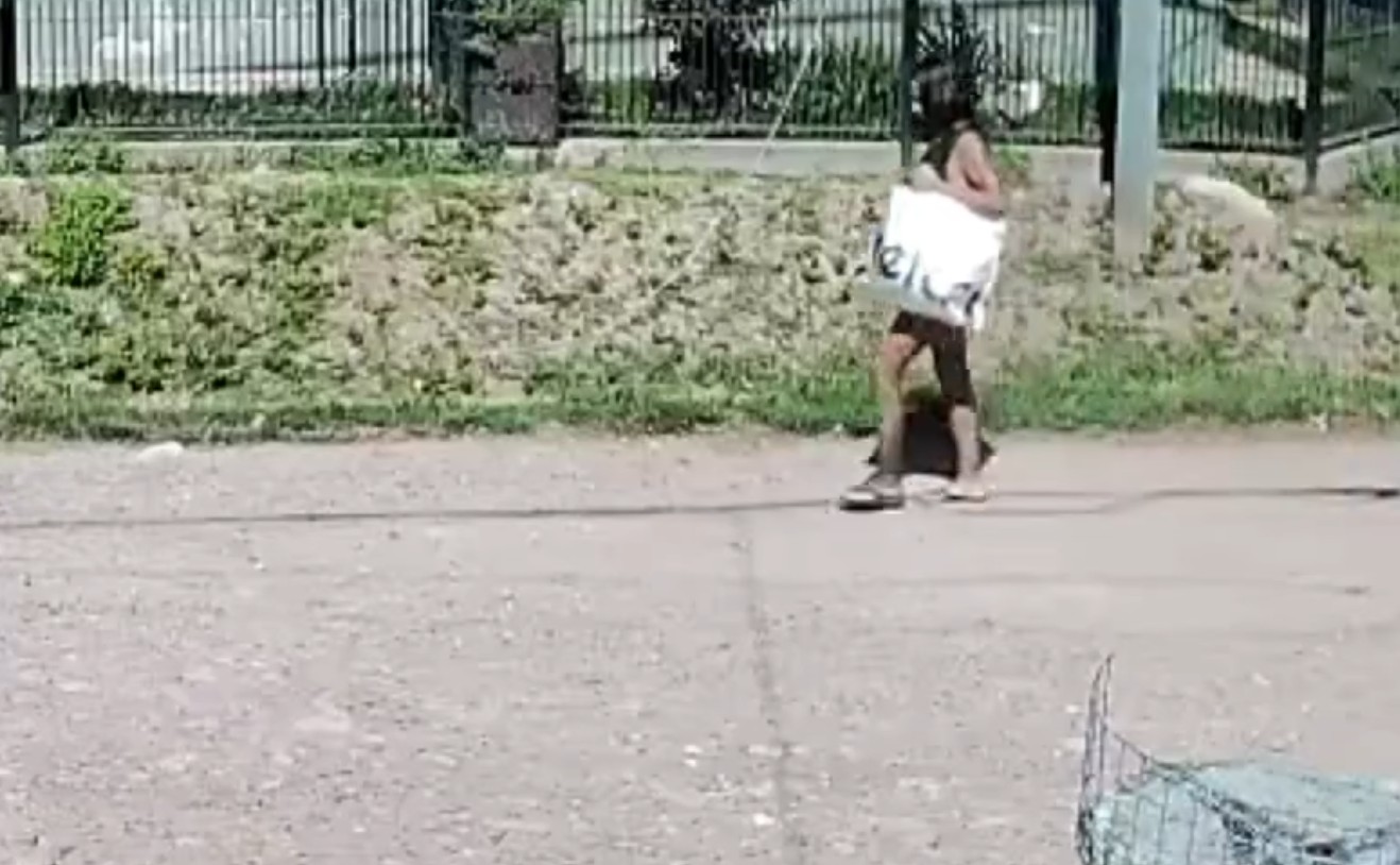 Las imágenes captadas por una cámara de una casa del barrio mostraron a una mujer caminando por la zona con una bolsa.